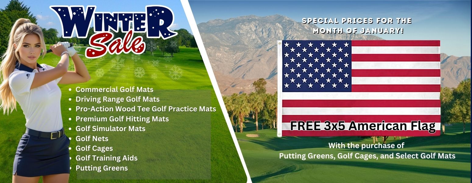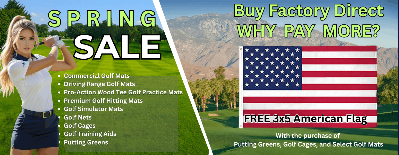 Buy Any Size Commercial Golf Mat and For A limited time, Patriotic Golfing Americans will also receive a Free 3x5 American Flag as a Bonus Gift. Why are we doing this? Simple We're promoting MADE IN THE USA, BY AMERICAN WORKERS.
